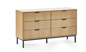 Natural Oak & Rattan Effect 6 Drawer Wide Chest