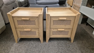 Pair Of Natural Oak & Rattan Effect Bedside Tables
