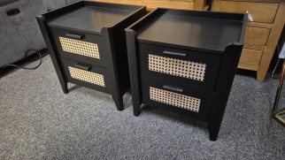 Pair Of Black Ash & Rattan Effect Bedside Tables