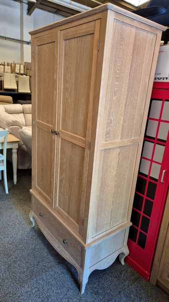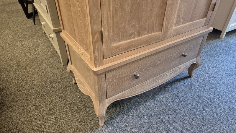Inspired from a classic Limed Oak French design, the Camille wardrobe excels in elegance. Featuring traditional ornate details, from the curved and arched edging, to the cabriole legs, this wardrobe is the definition of a timeless design.