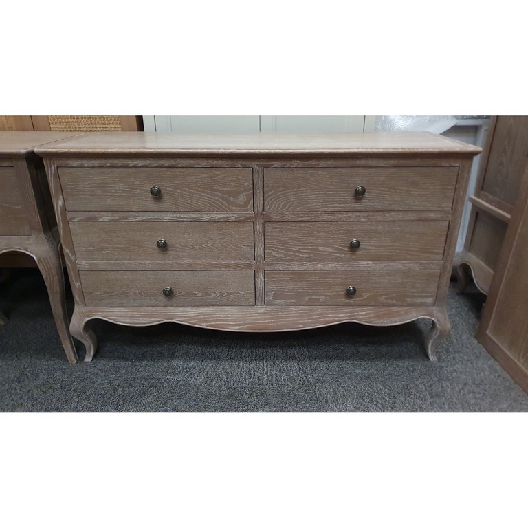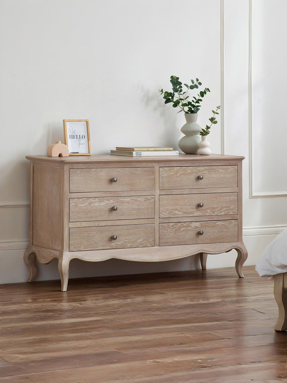 Camille Limed Oak 6 Drawer Wide Chest