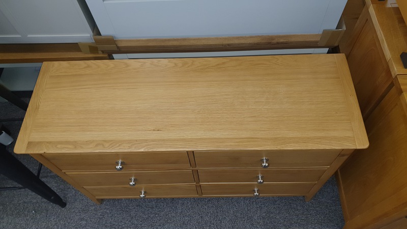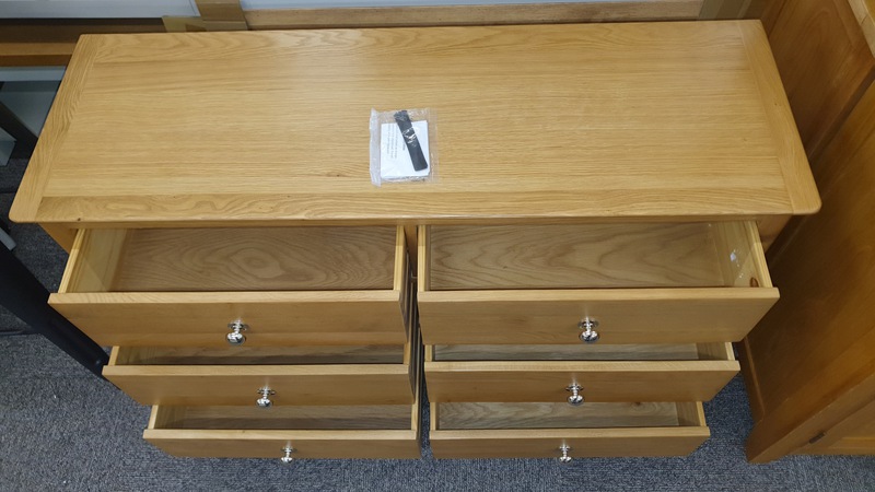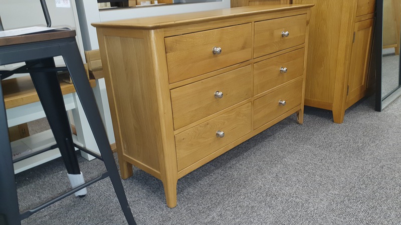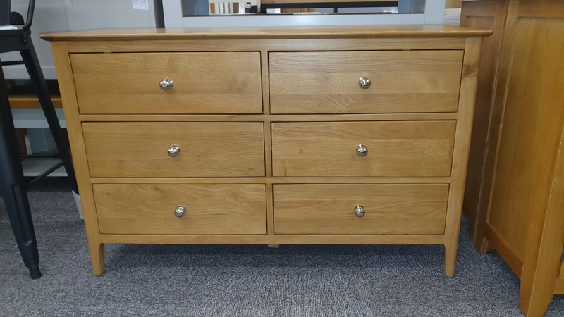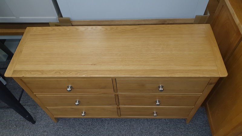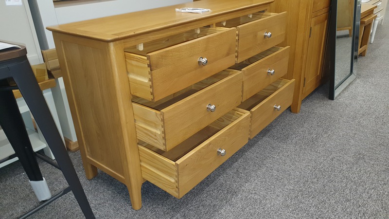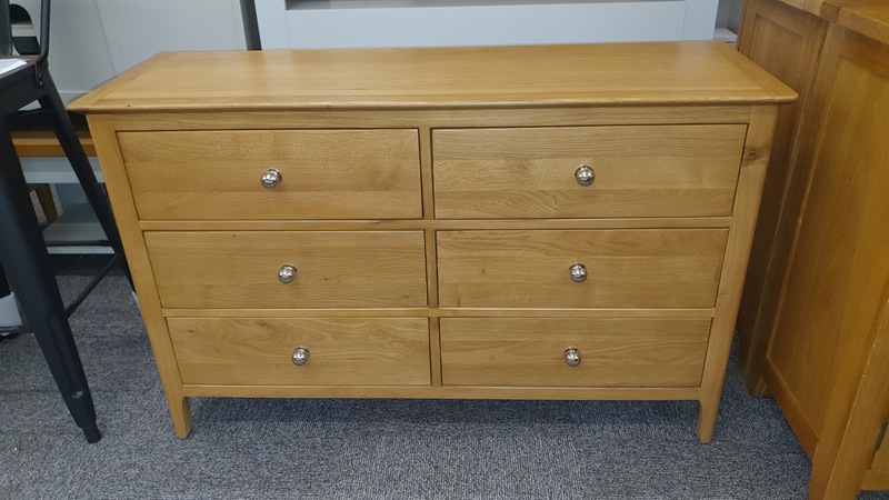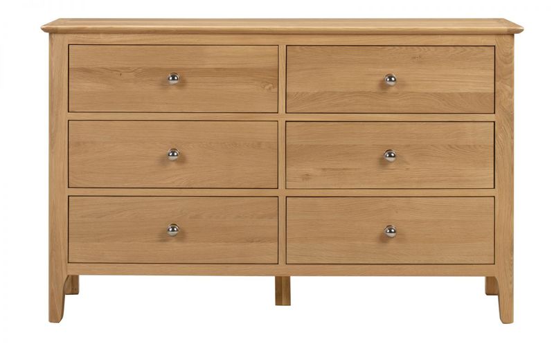 Crafted from solid oak and oak veneers, the Cotswold 6 Drawer Wide Chest ensures lasting durability with its robust structure. Featuring six large deep drawers, providing copious amounts of space to organise your belongings. This simple, yet elegant design is finished with a round silver knob, perfect for any traditional bedroom.