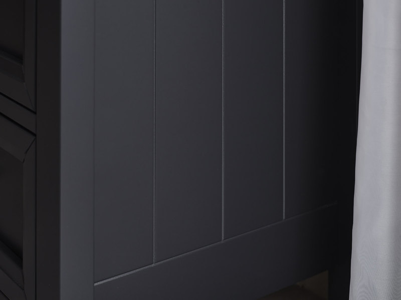 Maine is an elegant New England style range of bedroom furniture. The combination of exquisite anthracite lacquered finish with characteristic side panelling and detailed chamfered cabinetry makes for a soothing and refined aesthetic with timeless appeal, while delicate pewter handles add the perfect finishing touch. The Maine 3+2 drawer chest offers great storage with three large drawers topped with two smaller drawers.