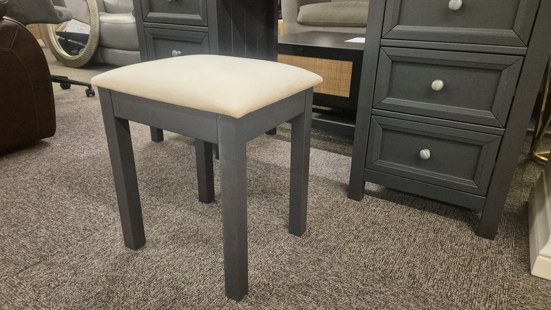Maine is an elegant New England style range of bedroom furniture. The combination of exquisite Anthracite lacquered finish with characteristic side panelling and detailed chamfered cabinetry makes for a soothing and refined aesthetic with timeless appeal, while delicate pewter handles add the perfect finishing touch. The Maine Dressing Stool has an upholstered padded seat, the perfect match for the Maine Dressing Table.