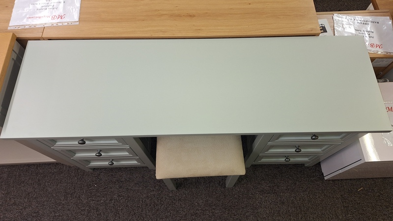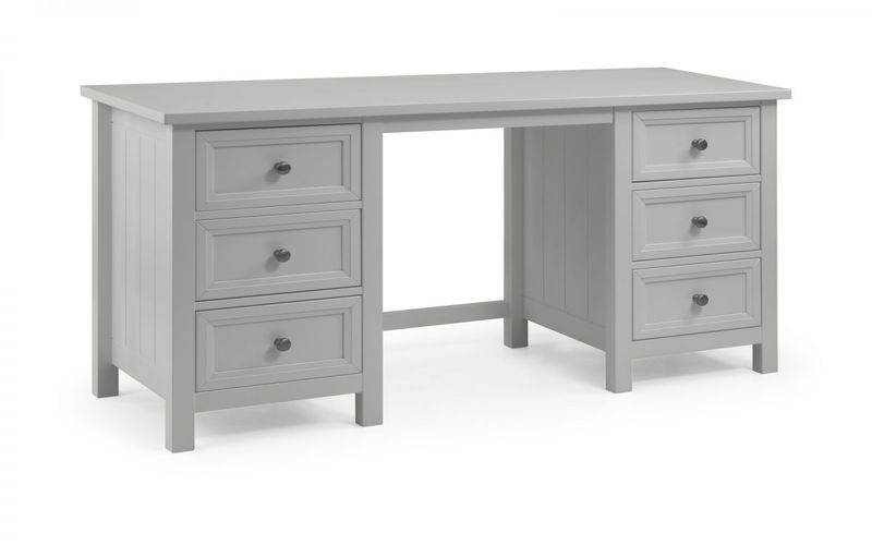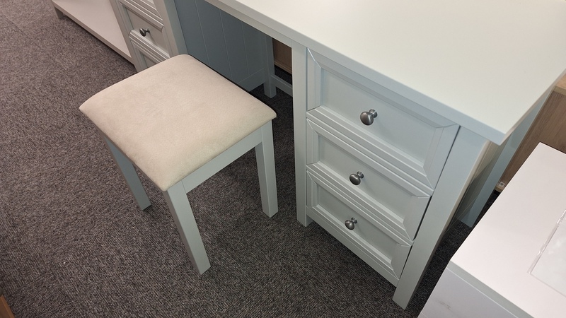 Maine is an elegant New England style range of bedroom furniture. The combination of exquisite dove grey lacquered finish with characteristic side panelling and detailed chamfered cabinetry makes for a soothing and refined aesthetic with timeless appeal, while delicate pewter handles add the perfect finishing touch. The Maine Dressing Table offers copious amounts of storage with 6 drawers. The perfect match for the Maine Dressing Stool.