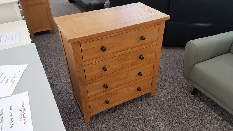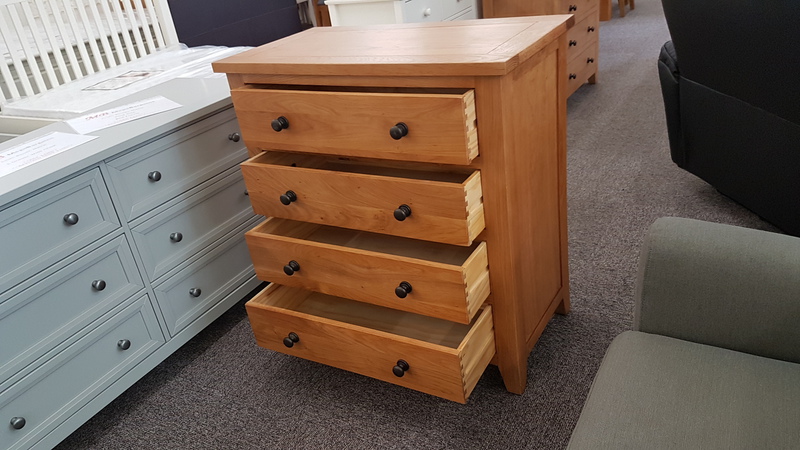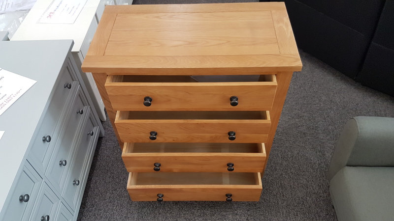 The Julian Bowen Marlborough 4 drawer chest is constructed from solid American White Oak and Oak Veneers, with a 30mm chunky top, clean lines and a sumptuous waxed finish. Drawers are constructed with Dovetail Joints.