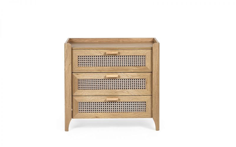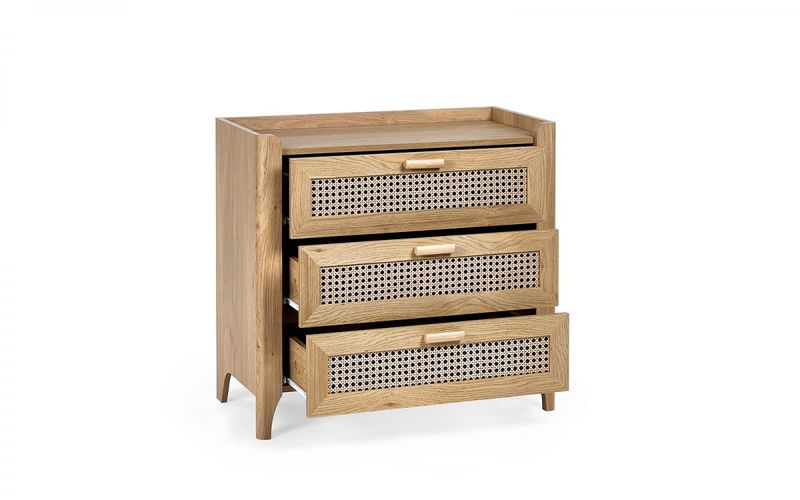 Natural Oak & Rattan Effect 3 Drawer Chest