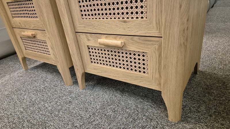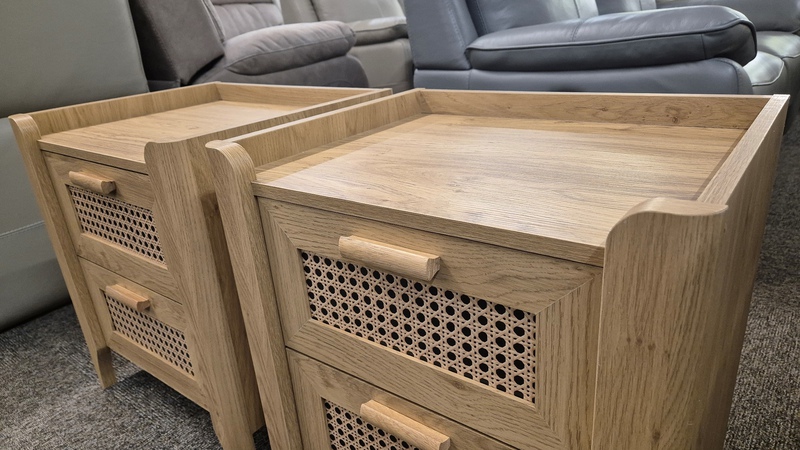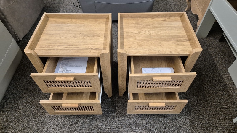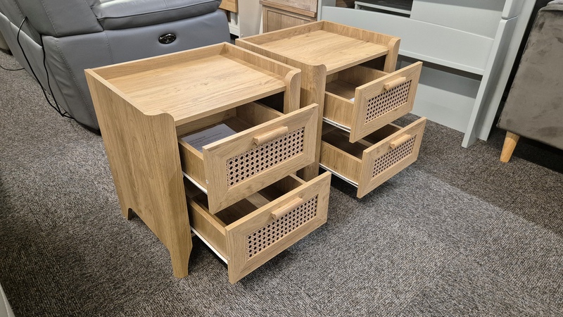 Natural Oak & Rattan Effect 2x Bedside Tables