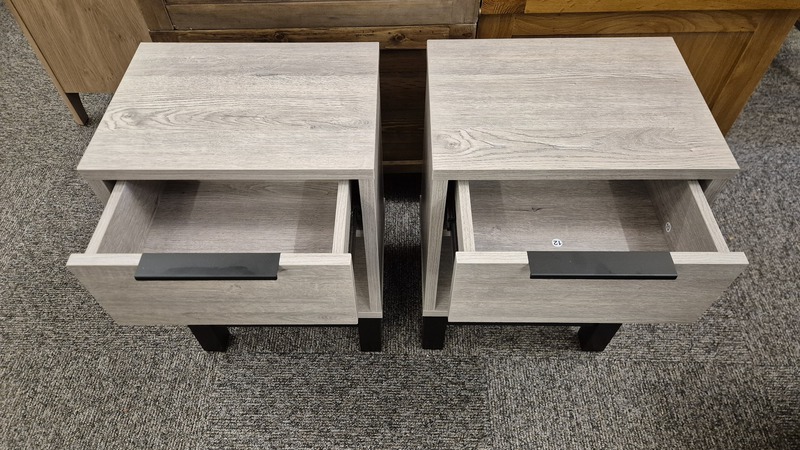 Pair Of Bali 1 Drawer Bedside Tables – Grey Oak