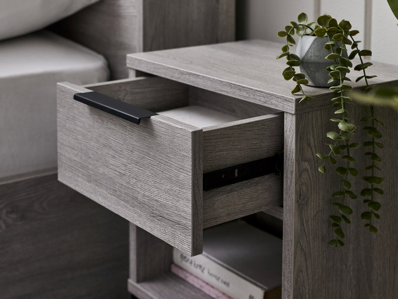 Using revolutionary click furniture technology, the Bali collection combines high quality style with simple assembly. With a modern oak finish and contrasting black legs and handles, the Bali collection creates a classic industrial look in your bedroom – leaving you with a high-quality interior, with low maintenance upkeep.