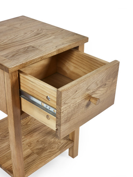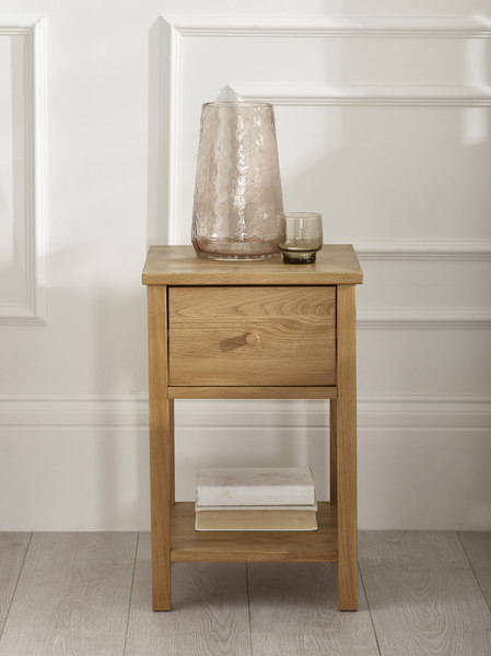 Compact bedside table designed to fit perfectly in small spaces while offering essential storage.