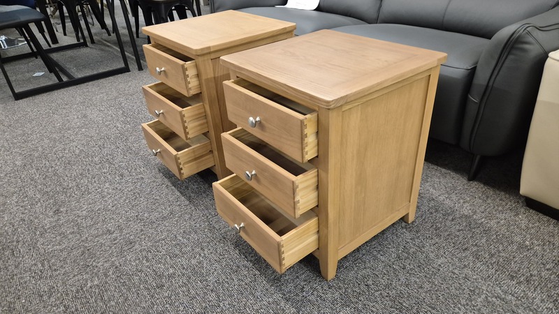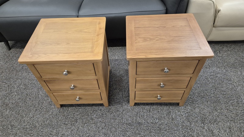 Pair Of Mallory Oak 3 Drawer Bedsides