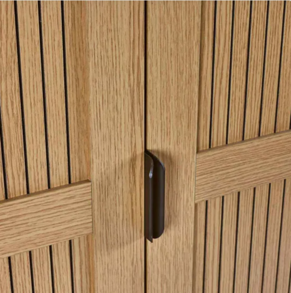 Elevate your storage experience with the Sia 2 Door Wardrobe. Featuring beautiful vertical slatted effect doors and a spacious interior, this wardrobe seamlessly blends style and functionality. Designed to keep your clothing and accessories organised, it offers ample hanging space along with two shelves to fulfill all your storage needs. The sleek black handles provide a refined touch, enhancing its modern appeal. The combination of warm wood tones and sleek black legs adds a contemporary twist to traditional design, making it a striking focal point in any bedroom. Easy assembly makes it a breeze to incorporate into your decor. Requires minimal assembly for your convenience.