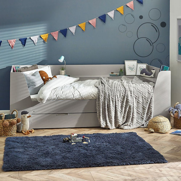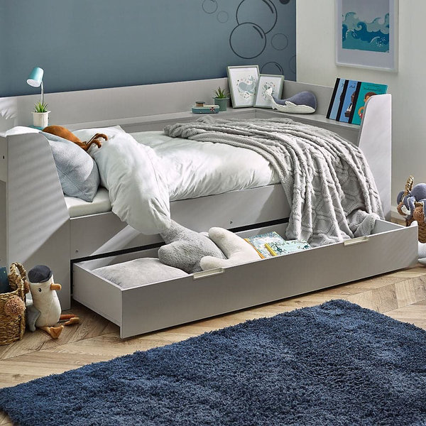 Offering a modern look, the Cyclone Daybed provides the perfect blend of style and functionality to any kid's bedroom. Featuring a large pull-out drawer with two embedded handles and a shelving unit on the top ideal for storing and organising key essentials. Creating the perfect versatility for your little ones for lounging and sleeping. Available in All White and Taupe.