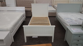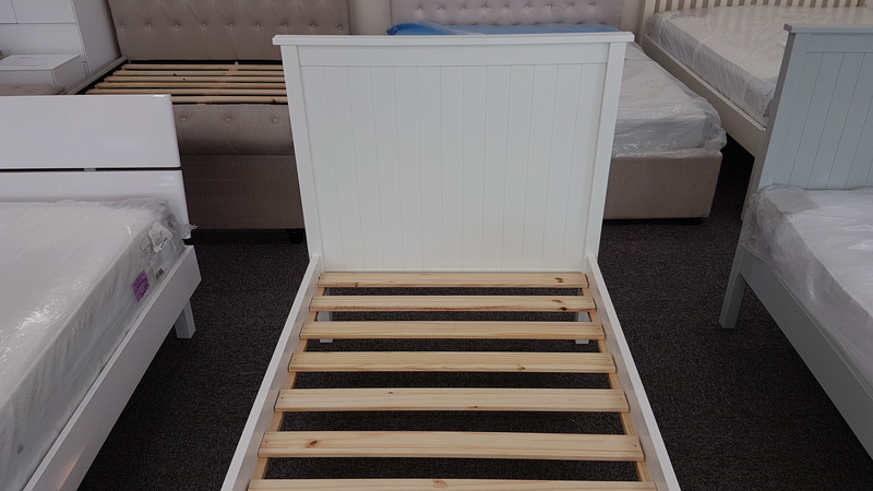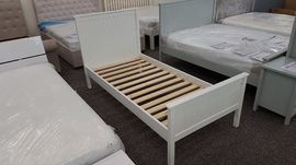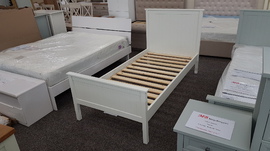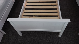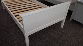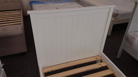An elegant and simple New England style bed whose characteristic panelling is beautifully finished in an exquisite surf white lacquer to create a soothing and refined aesthetic with timeless appeal. A solid slatted base ensures supreme comfort and prolonged mattress life.