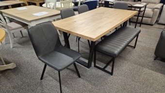 Brooklyn Oak Dining Table & 4 Goya Chairs & Soho Bench