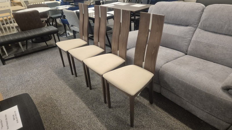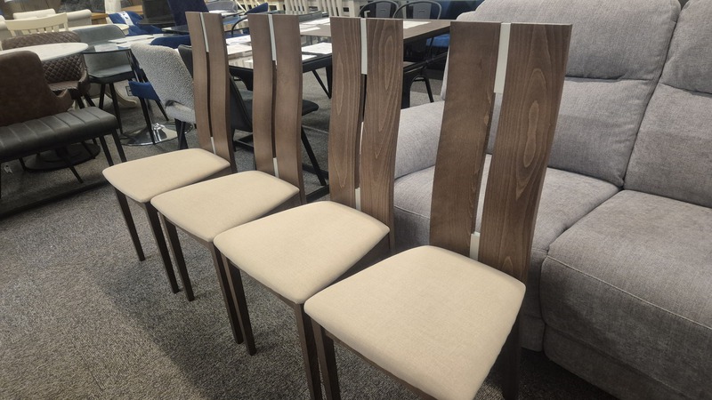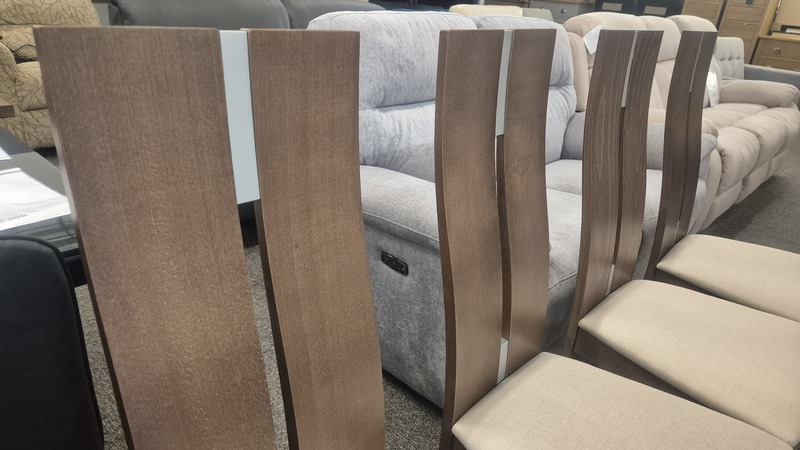 The Cayman Dining Chair is a Sculpted High Back Chair made from Solid Beech with a Walnut Finish and Brushed Metal Effect Insert.