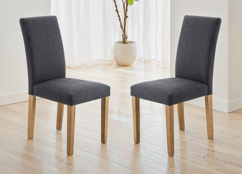 Stylish and Modern: Dark grey fabric dining chair with a sleek design, perfect for contemporary dining spaces. Upholstered in high-quality fabric for a sophisticated look and feel.