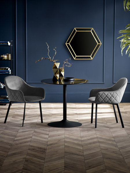 Add a touch of elegance to your dining space with the Lima Grey Velvet Chair set. Boasting a sleek, modern design, this chair features plush grey velvet upholstery accented by textured diamond stitching on the backrest. Supported by stylish black metal legs, it brings both comfort and contemporary flair to any setting.