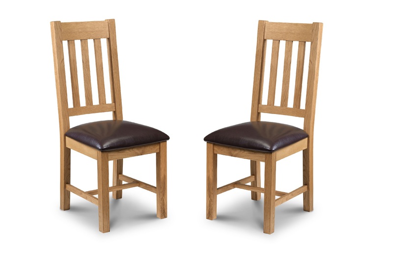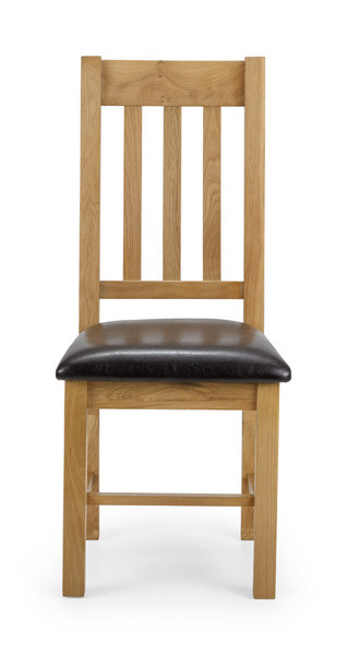 A classic styled dining chair constructed from solid White Oak in a beautiful waxed finish with a comfortable brown faux leather, padded seat. With a range of coordinating furniture from the Julian Bowen Astoria range to create a warm, traditional feel in your home.