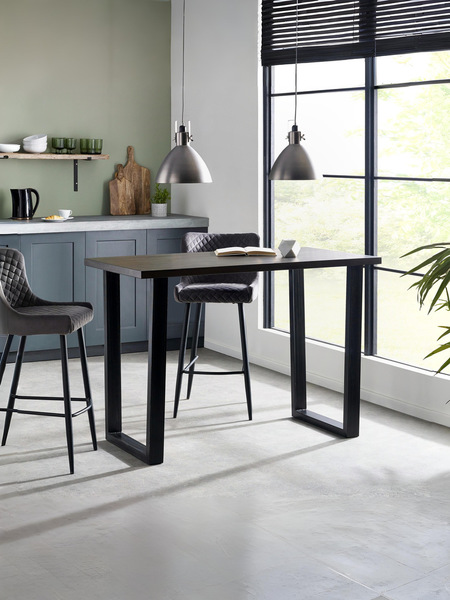 Made from solid oak and finished in dark oak, this bar table offers a rustic finish emphasising the oak wood grain. The Brooklyn Bar Table offers a vintage edge featuring industrial trapeze style metal legs. Perfectly pair with our wide range of beautiful upholstered bar stools.