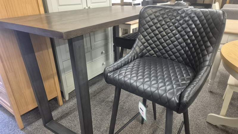 Combining a classic style with a modern twist, the Luxe bar stool is beautifully upholstered in faux leather with luxurious quilted detailing. Featuring contemporary black painted legs, this dining chair adds an industrial feel to any dining area.