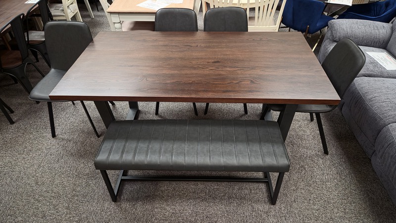 Brooklyn Dark Oak Dining Table & 4 Goya Chairs & Soho Bench