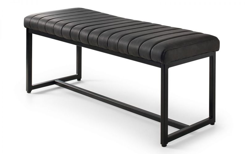 The Soho Bench adds an industrial, retro theme to any dining area. Finished in an antique black faux leather with a striking gunmetal frame, sure to compliment any contemporary décor. The perfect match for the Brooklyn Dining Table.