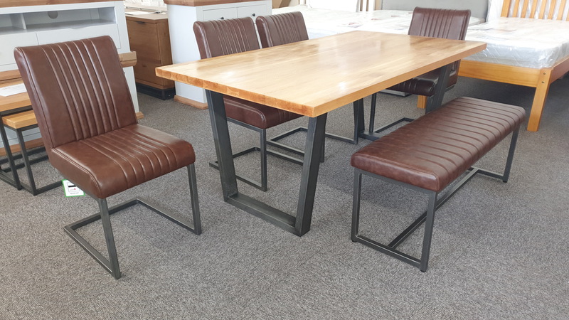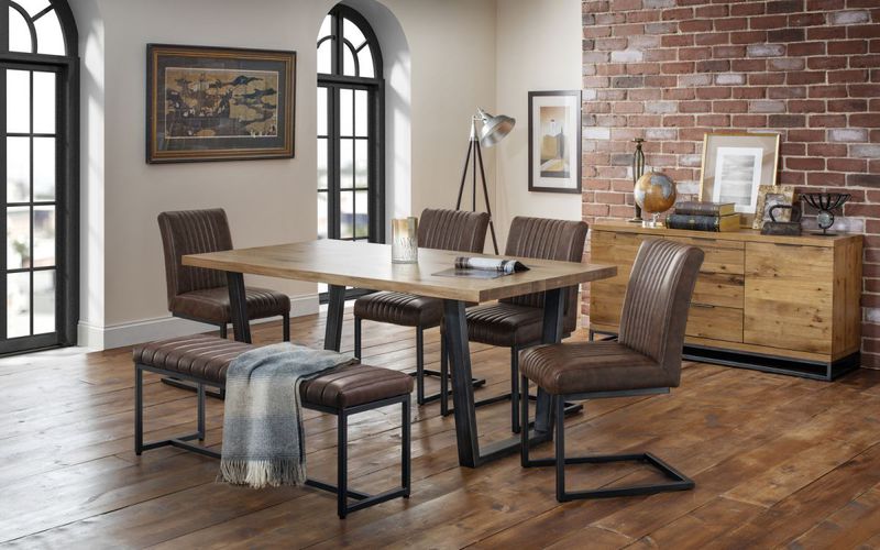 Brooklyn Oak Dining Table With 4 Brooklyn Faux Leather Chairs & Bench