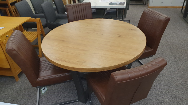 Brooklyn Round Oak Dining Table & 4 Faux Leather Chairs – Light Oak