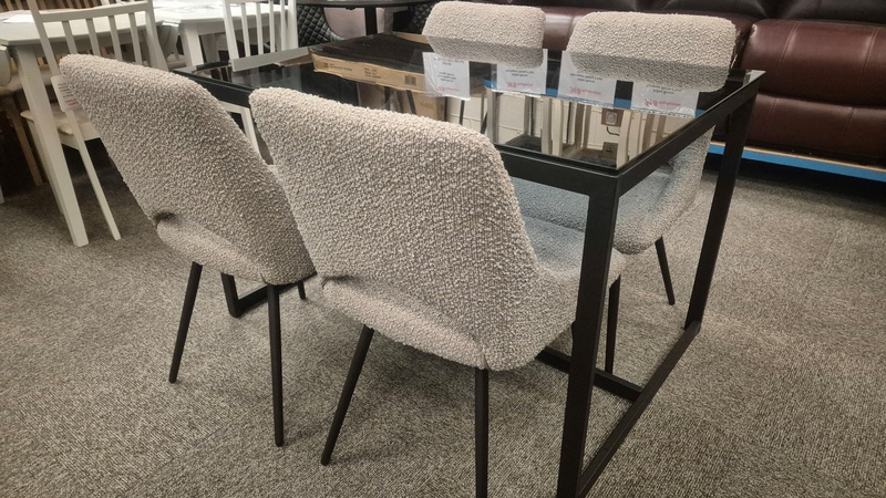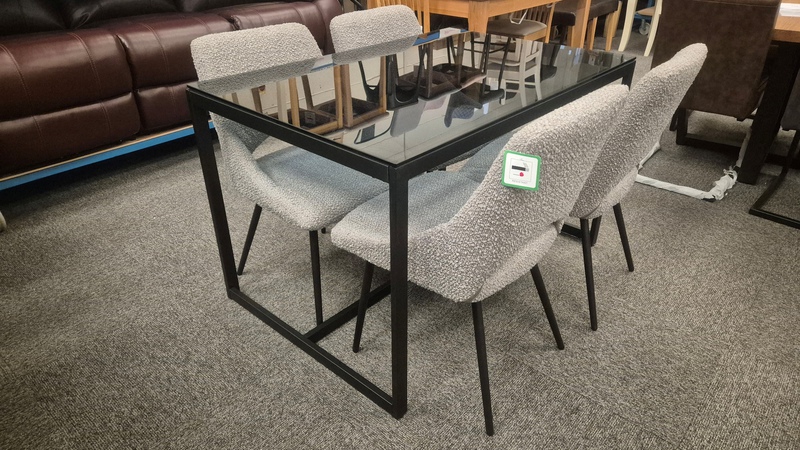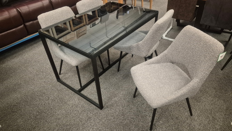 Chicago Dining Table - Smoked Glass & 4x Iris Boucle Chairs