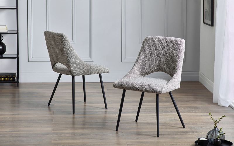 With a modern design, the Iris Boucle Dining Chair is wrapped in beautiful grey boucle with black legs - giving a retro vibe that is perfect to make your dining space look glamorous.