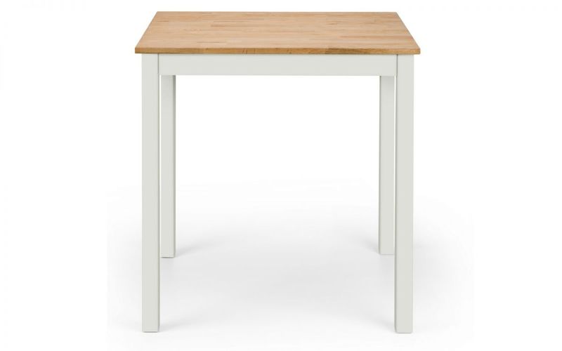 This compact solid oak dining table in an ivory & oak finish, is suitable for small kitchen diners. This classic, timeless design adds extra room for you to enjoy your daily meals. Paried with the ivory chairs leaves a crisp, clean aesthetic in your home.