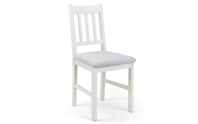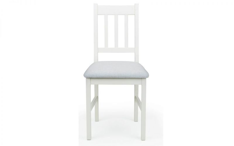 Crafted from solid wood this pair of chairs from Julian Bowen's Coxmoor collection will accent your dining table with elegance. The chairs are finished in a durable Ivory lacquer that brightens your space, while the comfy padded seats have been upholstered in a textural grey linen for an eye-catching contrast.