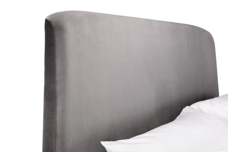 Featuring a gorgeous, curved headboard, the Frida bed exudes elegance and comfort. The black contrasting legs paired with the smooth velvet gives a modern look – and is likely to be the statement piece in any bedroom. It is also available in an ottoman version, perfect for those with smaller bedroom areas as it provides that extra storage space. Available in two beautiful shades of teal and grey.
