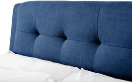 The Fullerton Bed is upholstered in a luxurious blue linen fabric with small black legs. This bed features a deep buttoned headboard, creating a contemporary, modern design suitable for a wide range of décor. Offering 4 spacious drawers, two at the end and one each side, this bed provides practicality with its storage features, allowing you to use the maximum space in your bedroom for other needs.