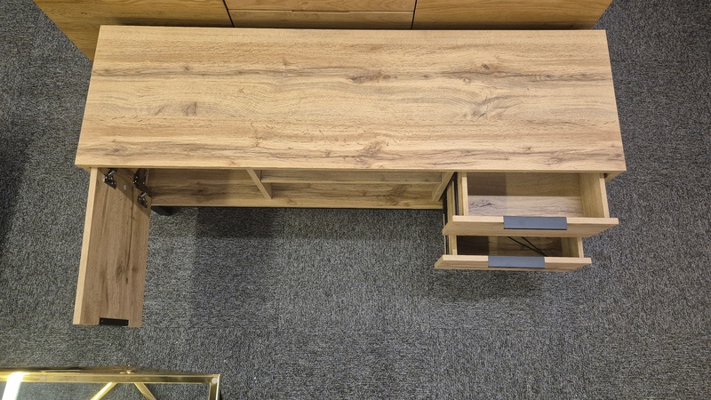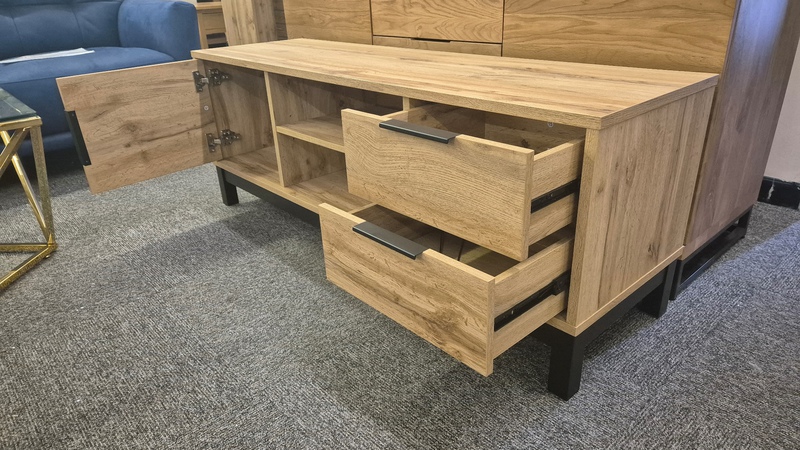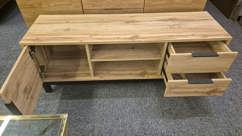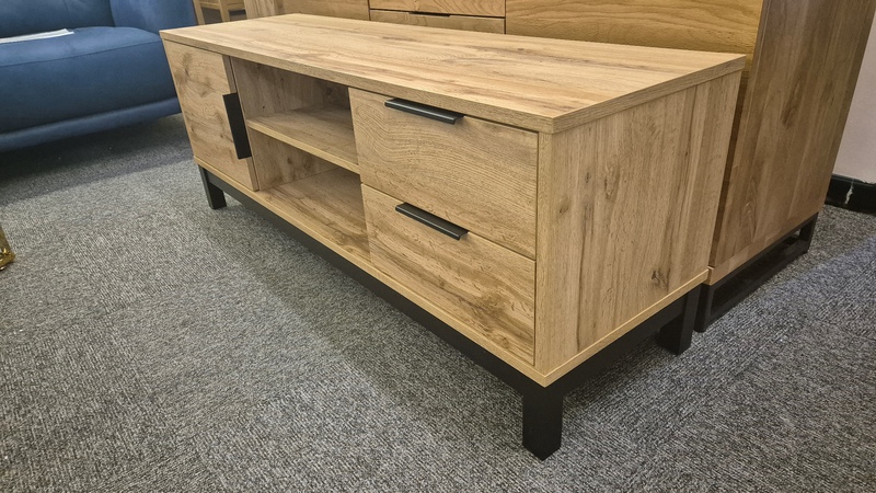 Discover the seamless blend of style and simplicity with the Bali TV Unit in Light Oak. Crafted using revolutionary click furniture technology, this unit seamlessly combines high-quality craftsmanship with effortless assembly. The modern light oak finish, complemented by contrasting black legs and handles, brings a classic aesthetic to your living room. Featuring a spacious cupboard and two pull-out drawers for organised storage, along with centre shelving for additional storage and display options.