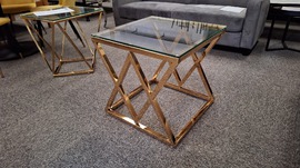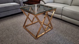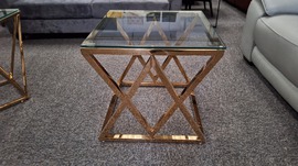 The Biarritz occasional collection will add a touch of elegance and extravagance to any home. Featuring a striking cross frame design, this range is crafted from high quality gold steel and 10mm tempered glass. The Biarritz collection includes a lamp table, coffee table, and console table.