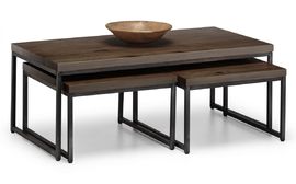 Made from solid oak, these nesting coffee tables offer a rustic finish emphasising the stunning dark oak wood grain. The Brooklyn Nesting Coffee Tables offer a vintage edge featuring industrial style metal legs. These Coffee Tables can be stored away under eachother when not in use, creating a space saving solution perfect for a wide range of modern decor. Part of the Julian Bowen Brooklyn Dining and Occasional Collection.