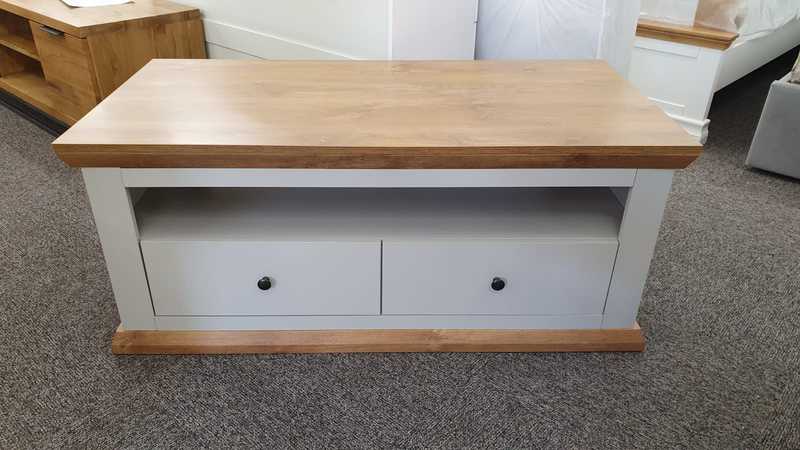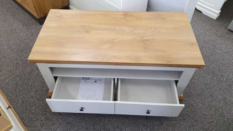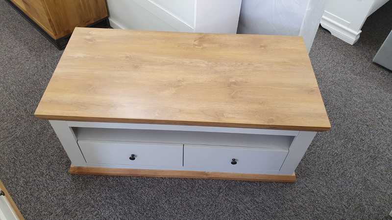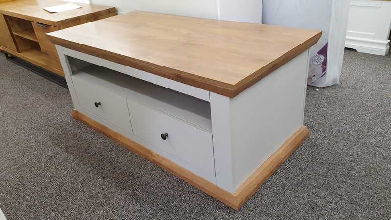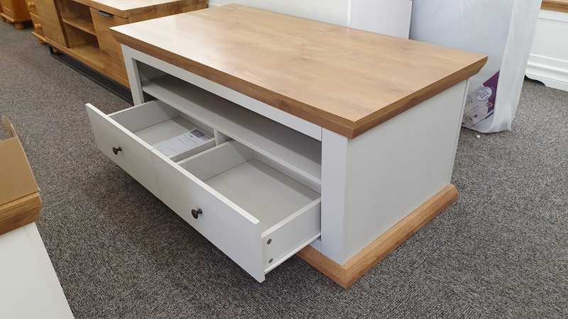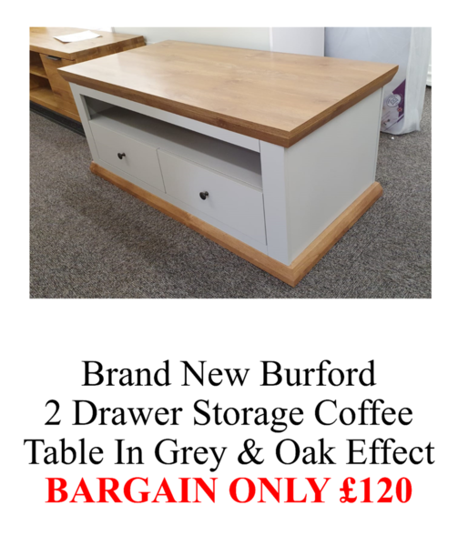 Burford 2 Drawer Storage Coffee Table in Grey & Oak Effect