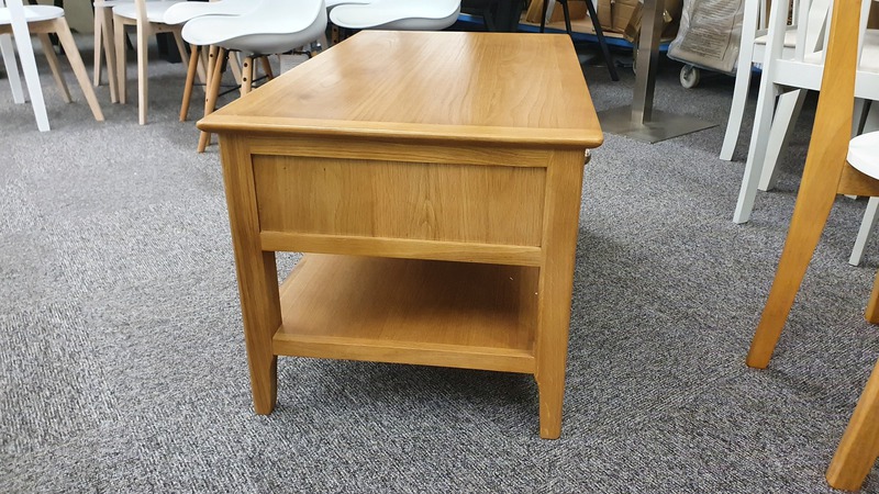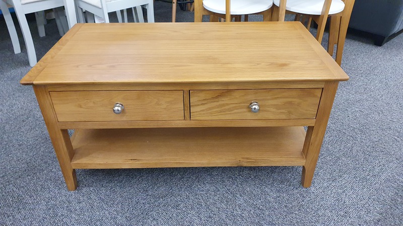 Crafted from solid oak and oak veneers, the Cotswold Coffee Table features 2 Drawers and a spacious shelf for keeping your essentials organised. This simple, yet stylish design is an ideal additional to any traditional living room with its soft edges and charming round silver knobs. Part of the Julian Bowen Cotswold Dining & Occasional Collection.