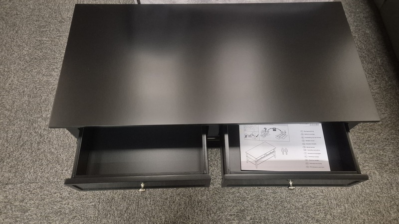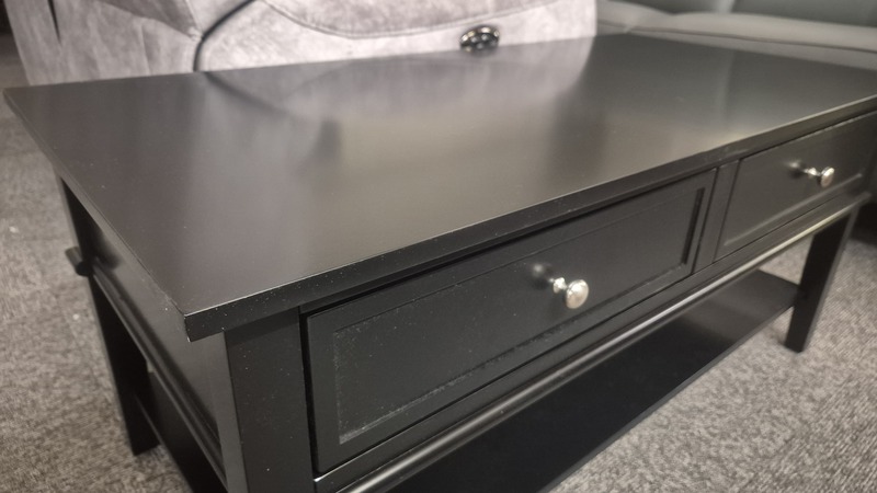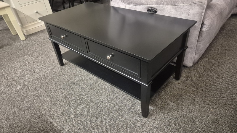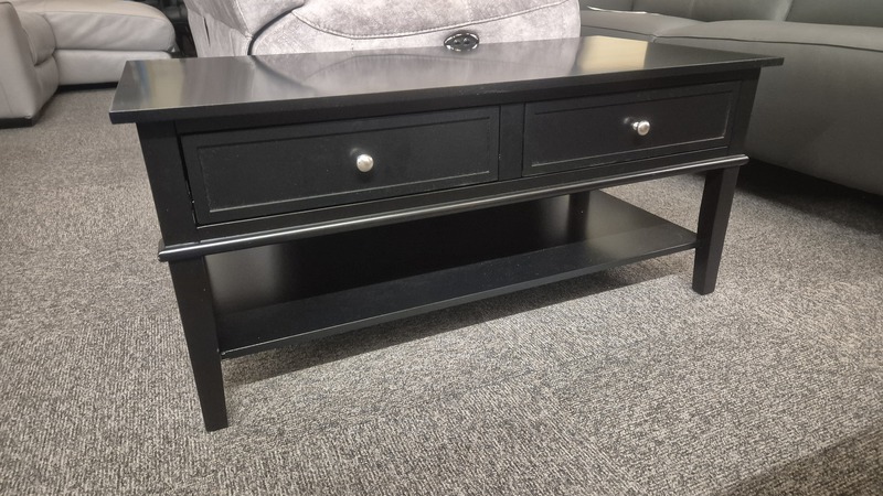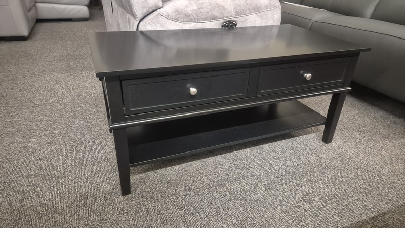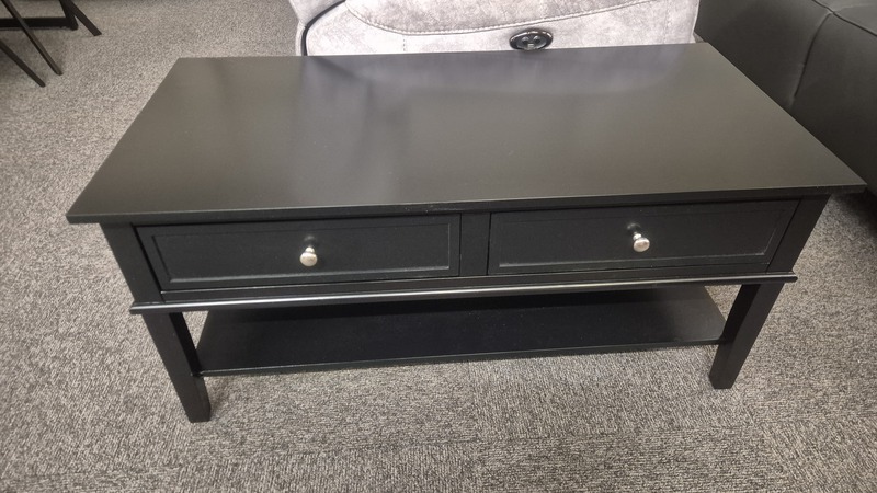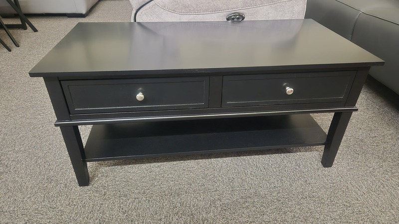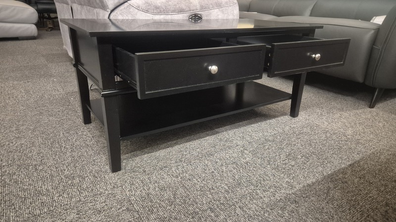 Keep your entertainment essentials nearby on the Franklin Coffee Table. Made of painted MDF and solid wood legs, the black can easily be added to your existing decor. The decorative moulding and tapered legs give this Table an elegant look for an instant upgrade for your living space. The spacious tabletop offers plenty of room for your remotes, decorations, and tablets. The open lower shelf is perfect for books and magazines or extra blankets. The Table features 2 drawers to store away small items and electronics to keep your tabletop clutter-free. Finish your living room with the entire Franklin collection and make your house a home, each sold separately.