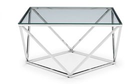 The Stunning Rivera occasional collection will make a real statement in any room. The glamorous octagonal chrome base contrasts against the tempered glass top, whilst creating a unique geometric design that will be the talking point of any living area. The Rivera collection includes a coffee table and lamp table.