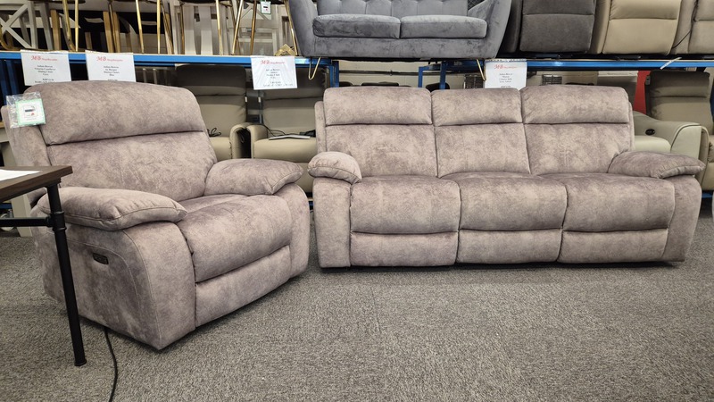 Furniture Village Moreno Brown Fabric 3 Seater Sofa & Armchair Power Recliners