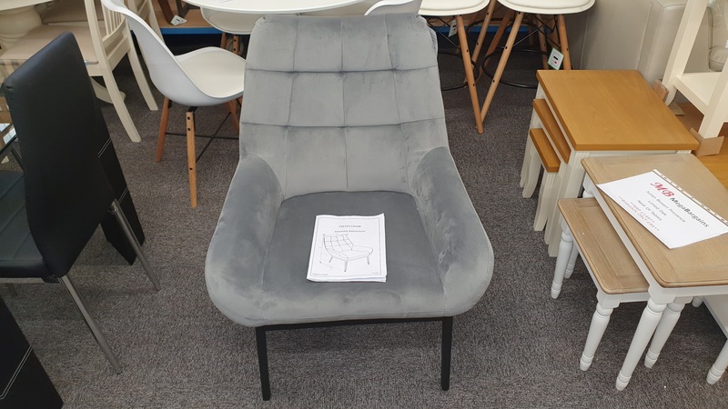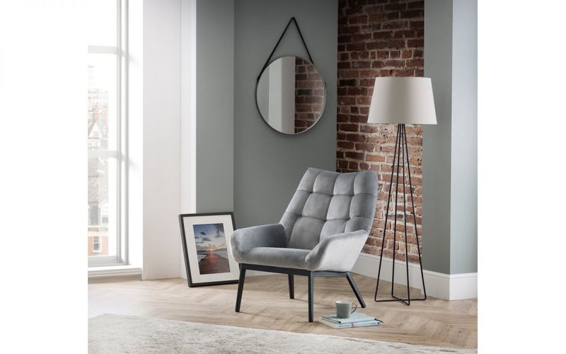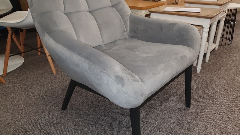 This modern, retro design revives a classic 70’s design with a contemporary touch. Upholstered in a grey velvet fabric, this relaxed frame has a tufted back, whilst sitting upon a black metal frame creating an industrial twist. The Lucerne is the perfect chair for relaxing after a hard day’s work.