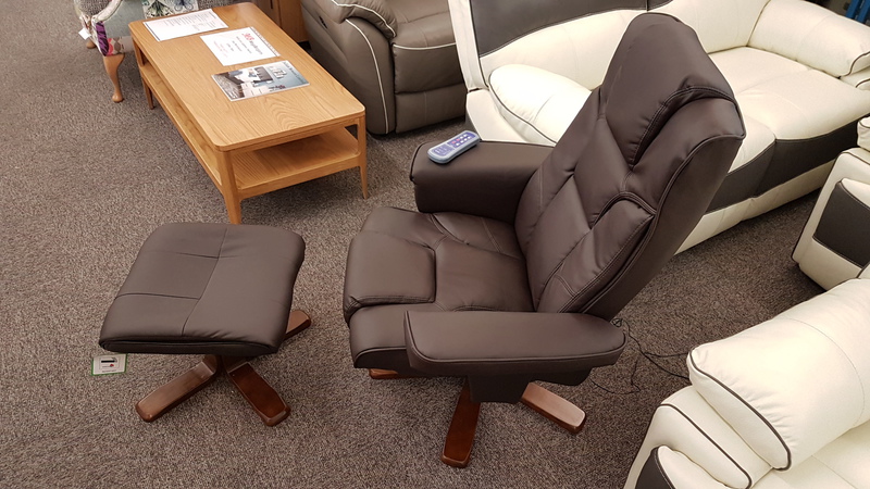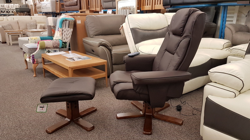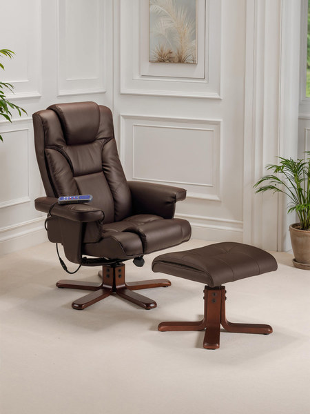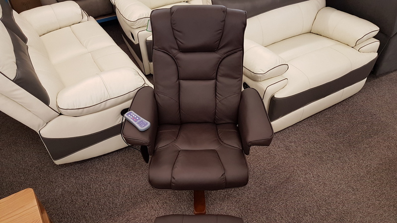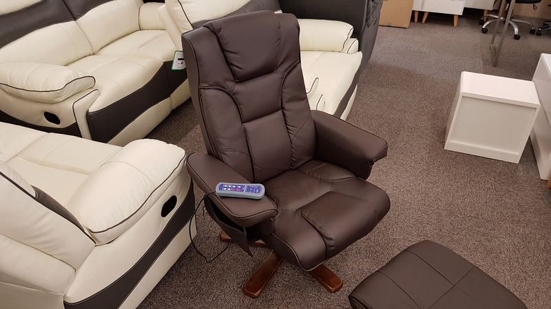 The Malmo reclining swivel chair and stool, upholstered in a soft touch faux leather with a walnut colour laminated base is now available with an added 8 Point Massage Unit and Lumbar Heated Pad. This chairs offers the ultimate in complete sitting comfort and relaxation.