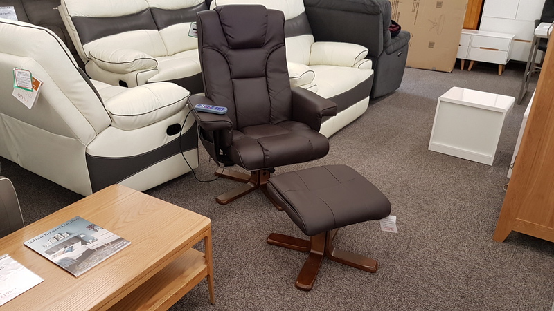 The Malmo Reclining Swivel Chair and Stool, upholstered in a soft touch faux leather with a walnut colour laminated base is now available with an added 8 Point Massage Unit and Lumbar Heated Pad. This chairs offers the ultimate in complete sitting comfort and relaxation.