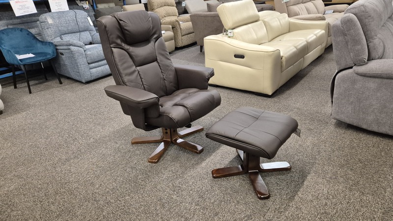 Malmo Recliner Chair & Footstool – Brown Faux Leather