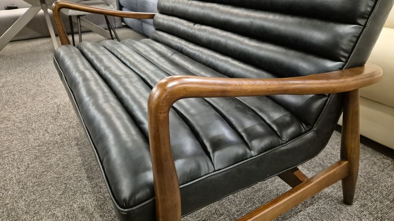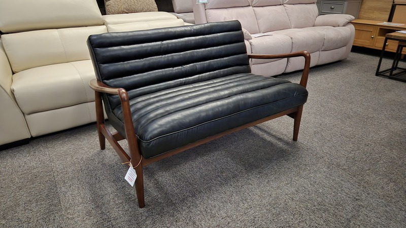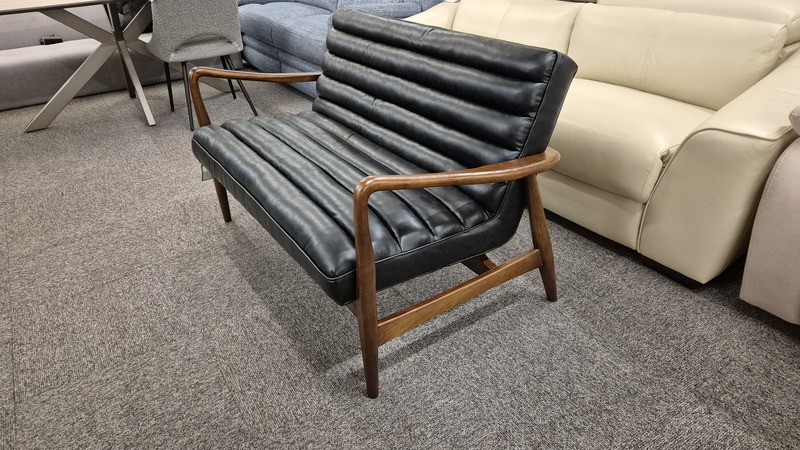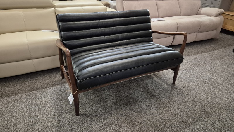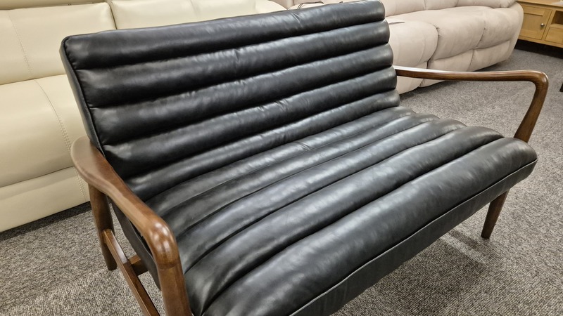Make a bold statement with the Marshall 2 Seater Sofa in Black, designed to elevate any space with its striking presence. Built on a solid oak frame with a sleek black finish, it seamlessly combines durability with modern elegance. The ribbed cushioned seat, wrapped in smooth black faux leather, offers exceptional comfort and a refined touch. Perfect for your living room or office, this sofa transforms any room into a sophisticated haven of style and luxury.
