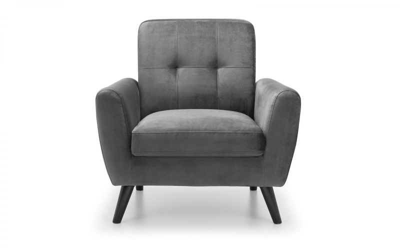 The Monza Armchair is compact and stylish with retro Scandinavian design influences. It is impeccably tailored in a smart, dark grey velvet. Monza has a seat that is deeper than most similarly sized armchairs, and is consequently incredibly comfortable. Its clean lines and slick design make it a real focal point for any modern living space. Part of the wider Monza upholstery range from Julian Bowen.